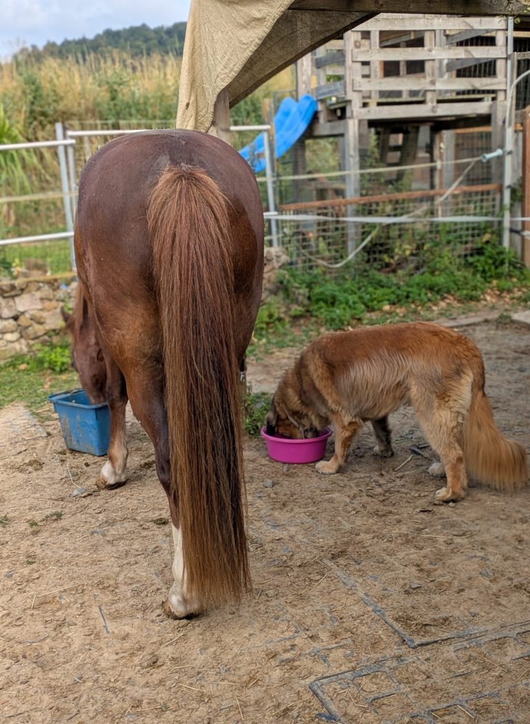 Bei unserem Pony ist es wichtig, dass die Heucobs nicht zu nass sind, Wir haben jedoch einen hilfreichen Trick entdeckt: Ein wenig Seniormüsli als Topping macht das Futter schmackhafter! Auch gemahlene Möhren oder Äpfel sind hervorragende Ergänzungen, die unsere Ponys gerne annehmen.